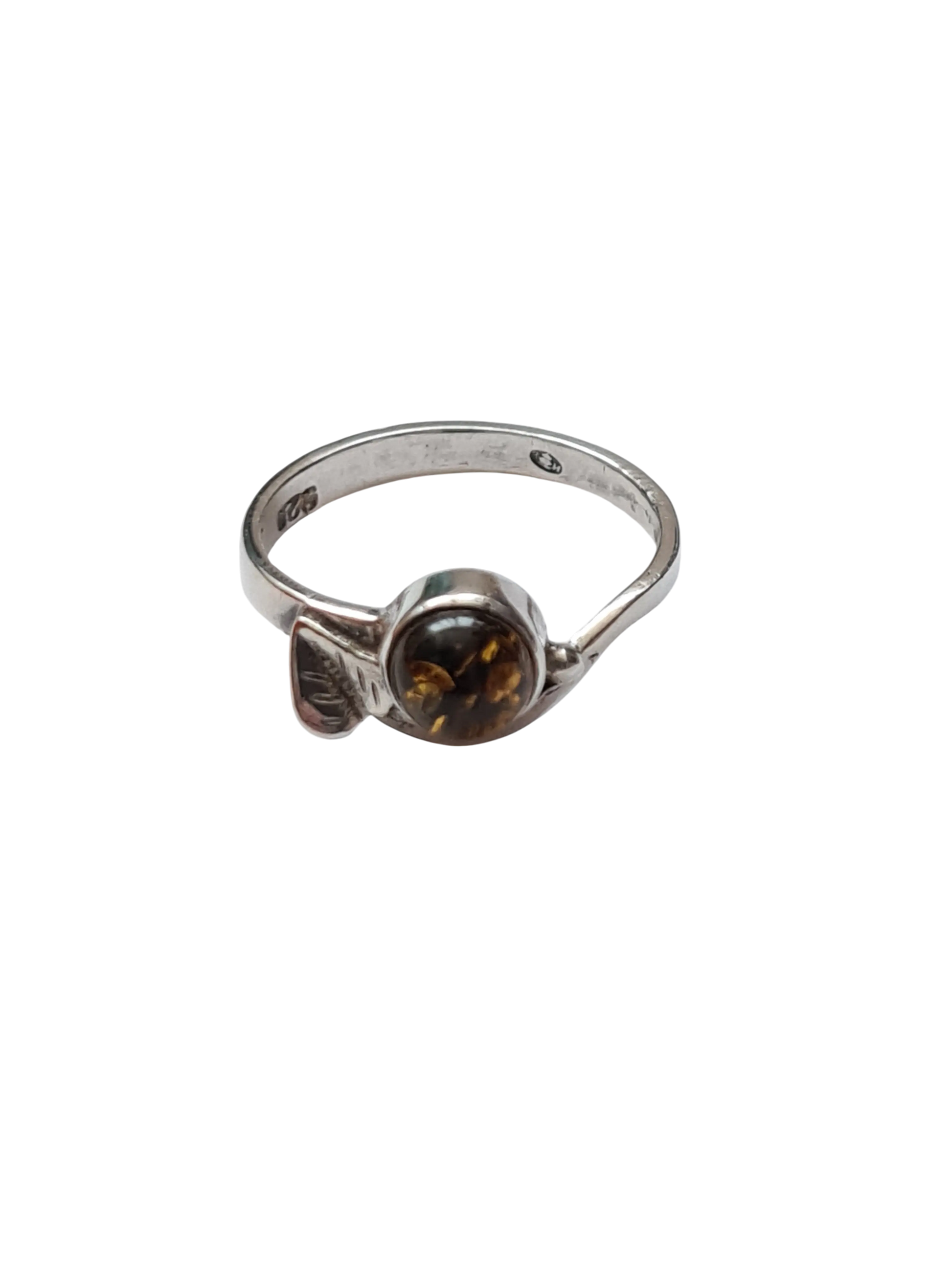 Bague argent 925 ambre véritable T54 vintage