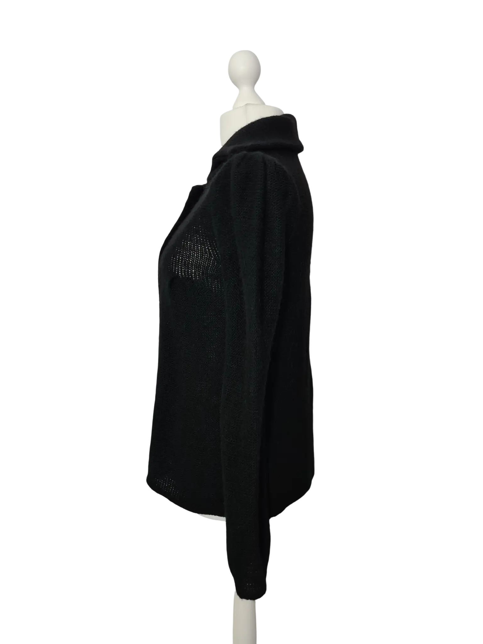 Pull noir à boutons T.XXL mohair laine made in Italy vintage 90s