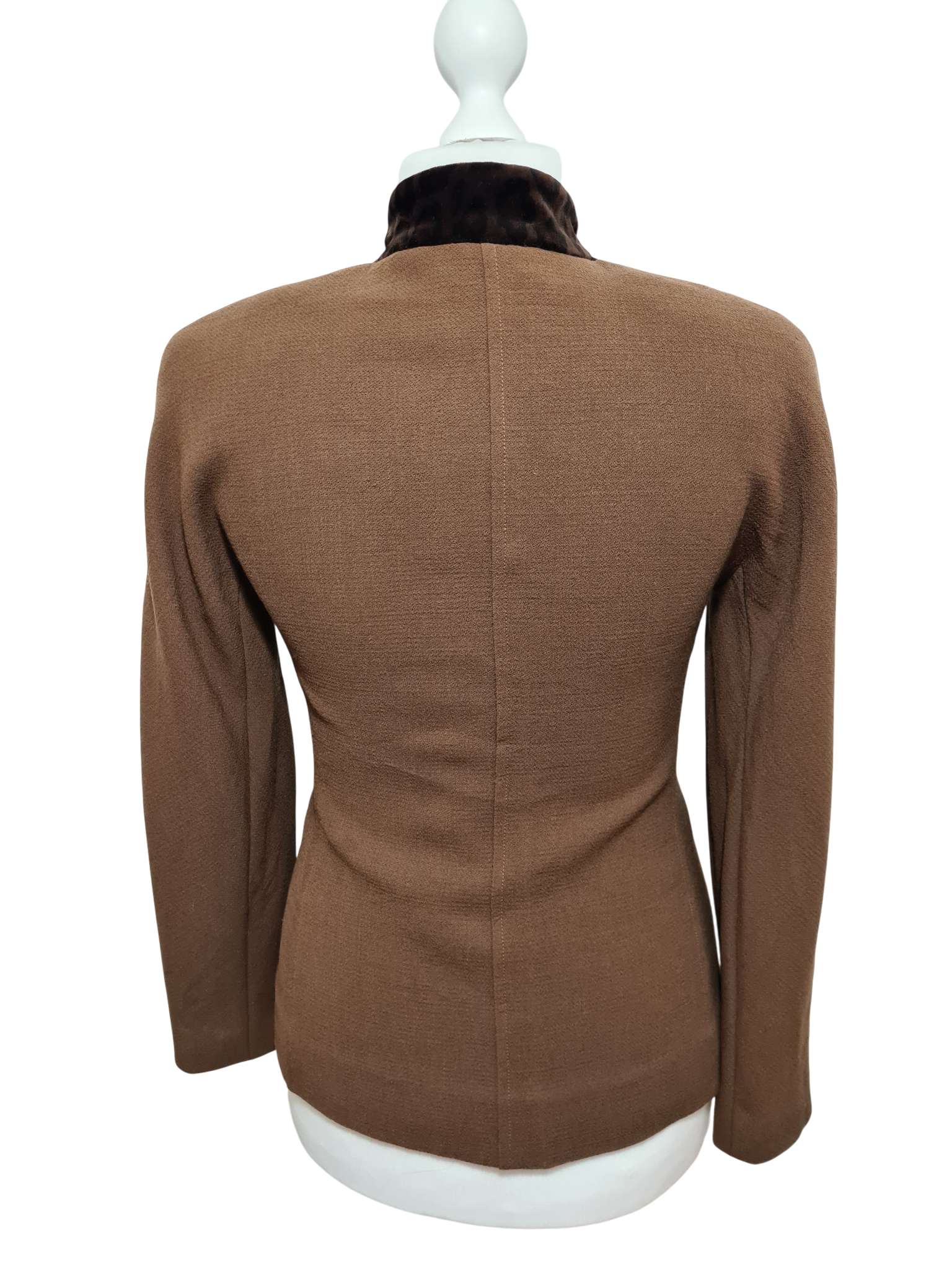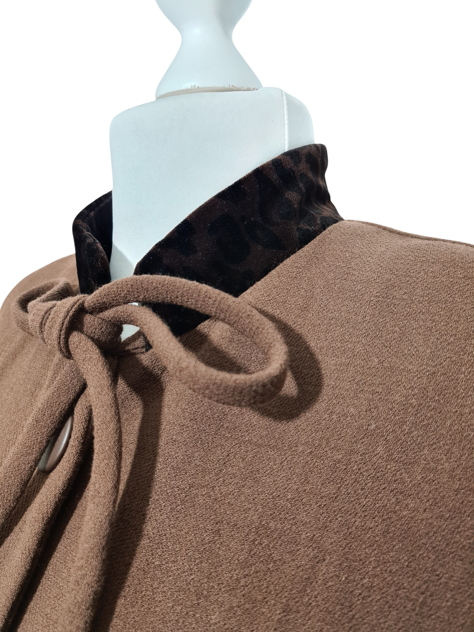 Veste femme marron, col velours imprimé léopard, marque Angelita Barcelona. Fabriquée en Espagne. Taille indiquée 44 mais correspond plutôt à un 40. Très bon état.